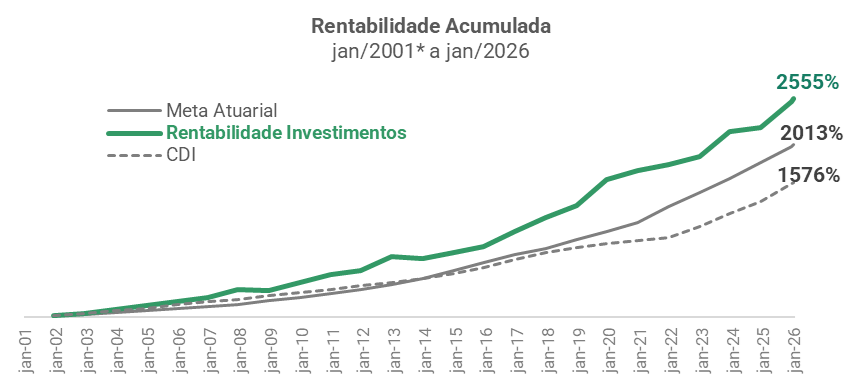 Nesse perfil, a parcela líquida estará, majoritariamente, exposta a títulos públicos e privados indexados ao IPCA, com expectativa de rentabilidade compatível com o IMA-B, buscando retornos superiores ao CDI no longo prazo.